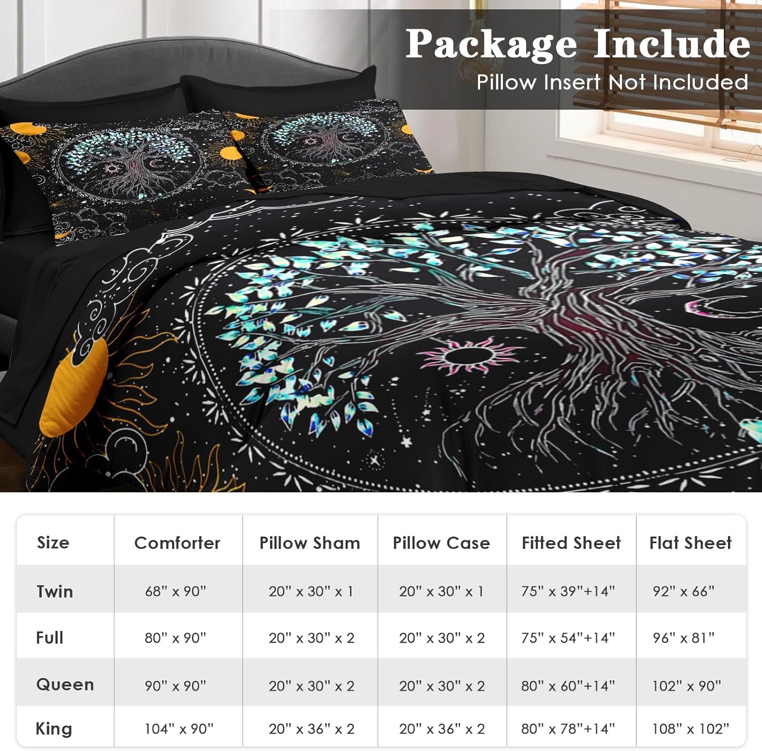 - Content Included: This bedding set comes with comforter (68″ x 90″) flat sheet (66″ x 92″), fitted sheet (39″ x 80″ x 14″), and one pillowcase (20″ x 30″) one pillow sham (20″ x 30″). Pillow inserts not included.
