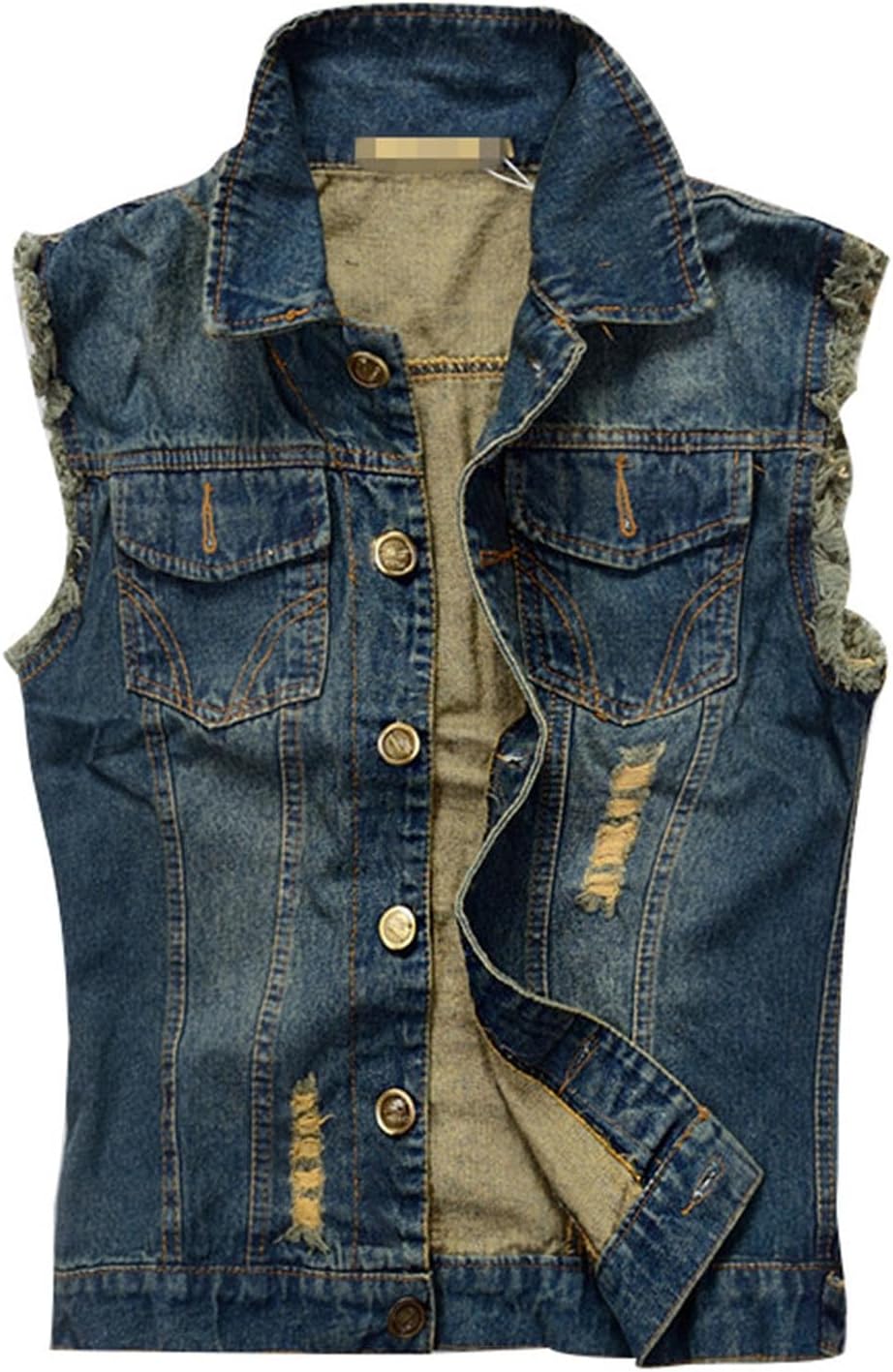 Cambkatl Men’s Punk Rivets Denim Vest Stylish Casual Loose Fit Sleeveless Jacket Button Down Lapel Vintage Jean Vests