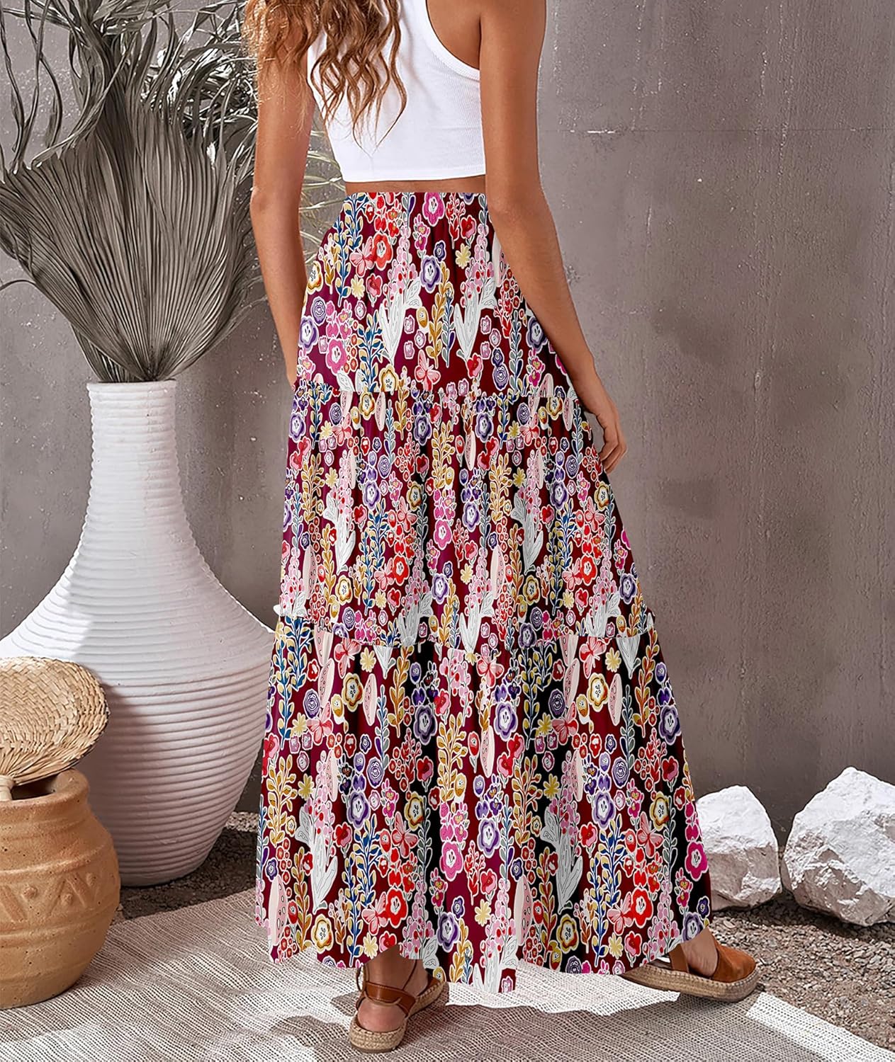 - QUALITY FLOWING MATERIAL : Boho maxi skirt, long skirts for women high waist is made of soft and skin-friendly polyester. Floral maxi skirt with pockets, womens skirt is fitted for most body shape that easy to put on or take off. Whether it is skiing or daily wear that keep you chic in all days.Hippie cute skirts can be used as a exquisite gift give your girlfriend, wife, family, friend, girls, daughter.