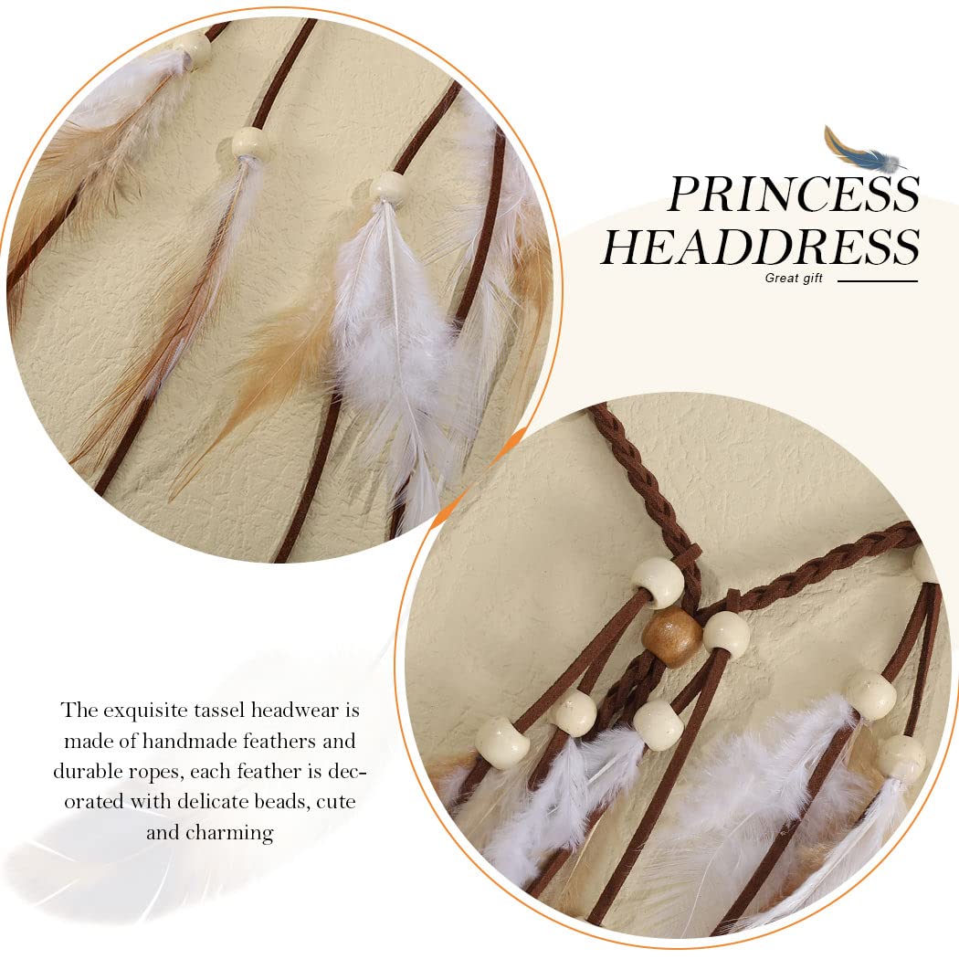 - Indiana Hippie Feather Headband mainly material is feather ,wood beads and rope,Feather headdress is very light weight and very comfortable to wear.